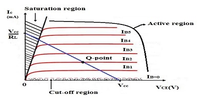 圖2 Q點(diǎn)是CE晶體管的直流負(fù)載線和輸出特性的交點(diǎn)